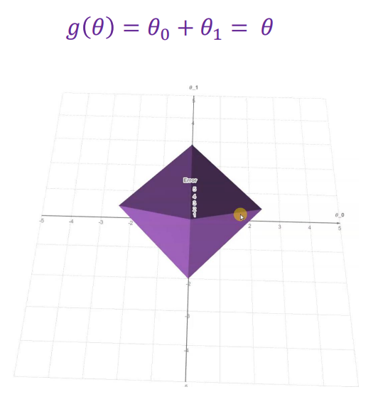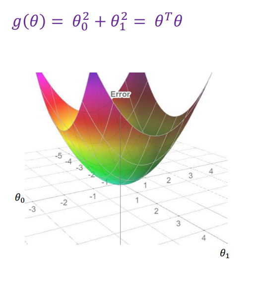 So now, we have: $$ E(\theta) = \frac{1}{N}\sum_{i}^n (y_i - X\theta)^2 + \lambda ||\theta||_2^2 $$ Remember that $X\theta = \theta_0 + \theta_1 x_1 + \theta_2 x_2 + \dots + \theta_d x_d$. Before we get confused, lets replace $x$ with $z$, to clarify that $x$ can be any polynomial function $f(x) = z$.